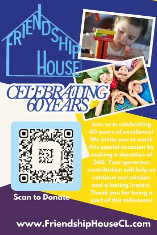 left over will be used towards new surfacing for the playground. This campaign will continue through December 2025. Please consider donating to our $60 for 60 years campaign by scanning or clicking